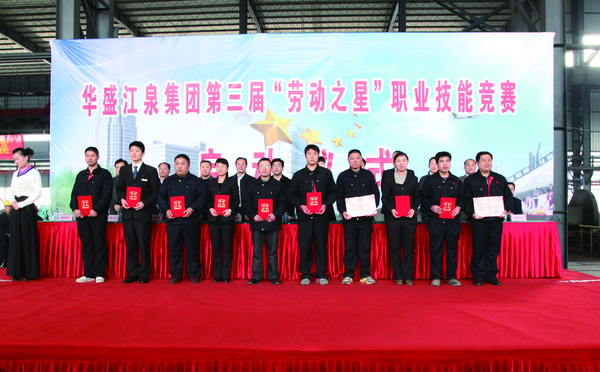 胡冰主持啟動儀式,王廷寶致辭,人力資源和社會保障局局長鄭月慶和楊傳信分別宣讀關(guān)于表彰華盛江泉集團(tuán)“十佳勞動之星”和“十佳帶徒師傅”的決定,主席臺領(lǐng)導(dǎo)為“十佳帶徒師傅“和“十佳勞動之星“獲得者頒發(fā)證書和獎金,王平作重要講話,彭向榮宣布第三屆“勞動之星”職業(yè)技能競賽正式啟動。