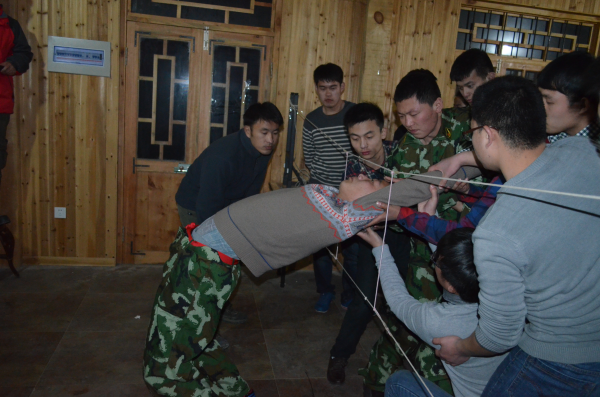 在晚上的訓練科目穿越生死線中,每一名大學生都面臨著嚴峻的考驗,不能交談,不能觸網(wǎng),一人違規(guī),全體返回重新開始。隨著激情豪邁的音樂,32名隊員組成的團隊穿越生死線開始了,寒冷的山間一線之隔卻令大家汗流浹背。穿越過程中大家失誤連連,不斷的返回、受罰、從零開始,當最后一名成員成功穿越時很多人留下了淚水,一種滿足感和成就感油然而生,每個人都從心底感謝隊友的支持與鼓勵。