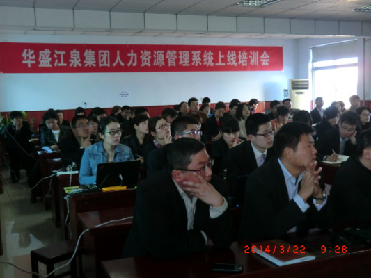 2014年3月22日上午9:00,華盛江泉集團人力資源管理系統薪酬管理模塊培訓會在人社中心三樓舉行,參加培訓會的有集團薪資專員、單位人事專員、用友HR項目組成員、江泉HR項目組成員共70余人。江泉方項目組代表申路平主持了本次培訓。