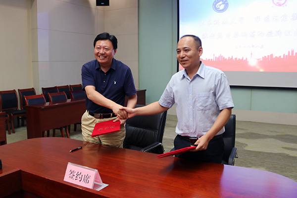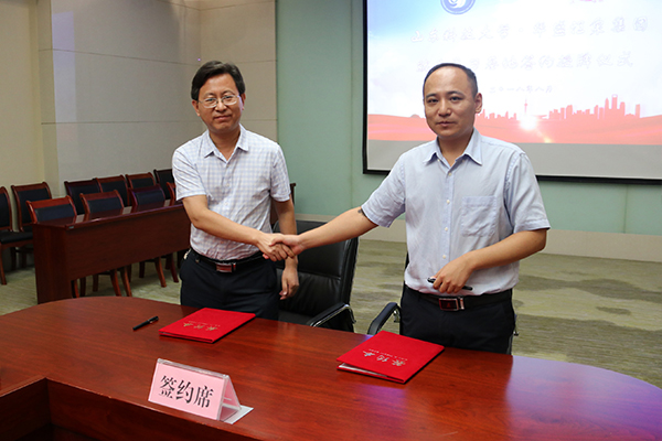 在簽約儀式上,王文圣代表華盛江泉集團分別與山東科技大學機械電子工程學院黨委書記陳濤簽訂了《校企合作協議》,與機械電子工程學院副院長韓寶坤簽訂了《高層次人才引進協議》。隨后,陳濤為教學實習基地授牌。授牌儀式后,雙方與會人員共同合影留念。